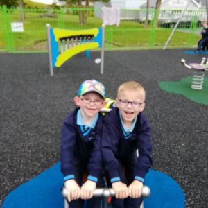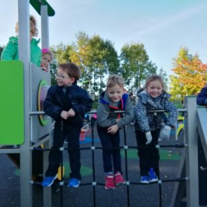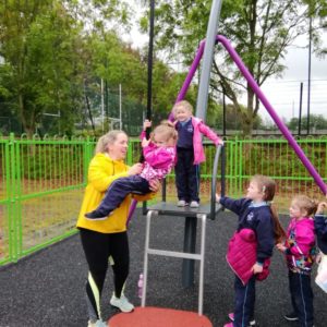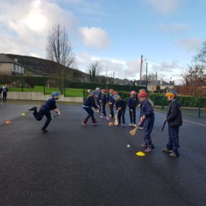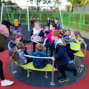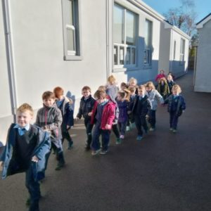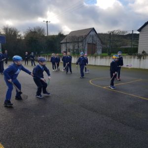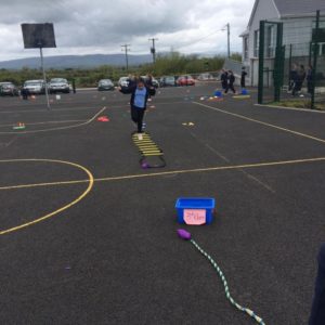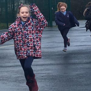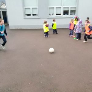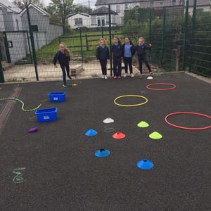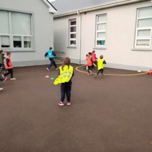 We have already started on the Playground Leaders program. 5th and 6th class pupils run the program every Wednesday at break and lunch time. They have a timetable of activities and engage each class group in different types of sports or exercise. Some examples are penalty shootout, parachute games, basketball, lunchtime disco and relay races.