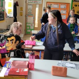 Is creatlach é Jeffrey.  Bhí a bhreithlá ann le déanaí.  Tá sé 252 bliana d’aois anois.  Bhí féasta againn sa rang do Jeffrey agus a cháirde; Nibbler an damhán alla agus Vlad an vaimpír.