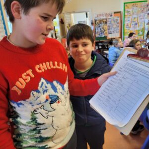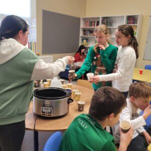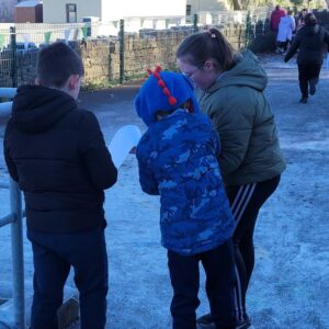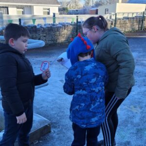 Ms. Blackwell kindly organised an orienteering activity ‘as Gaeilge.’ Bhí seacláid te againn ina dhiaidh. Bhí an-spraoi againn Lá seaca roimh Nollag!